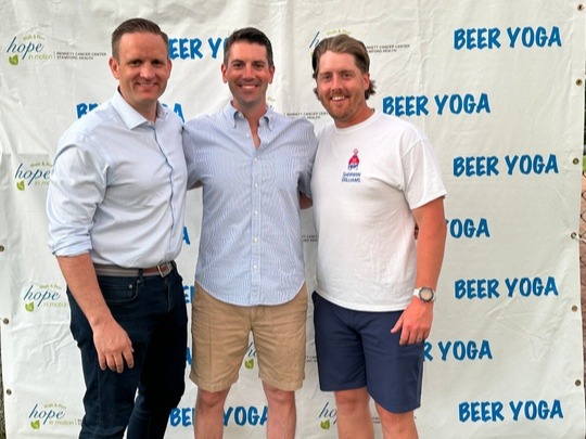 At Moneco Advisors we are constantly striving to give back to the communities that we are fortunate to live and work in. This week we spotlight some of the members working out of our New Canaan office. Derrek Metz, Todd Schroeder and Doug MacLean (pictured below), participated in the annual Beer Yoga event in Stamford earlier in the month. This popular event combines a healthy activity while enjoying your favorite libation. Moneco New Canaan was also one of the sponsors for this hyper local event. Beer Yoga for Hope in Motion raises funds to benefit the Bennett Cancer Center which is affiliated with Stamford Hospital. Funds are used to sustain services at no cost to patients like transportation to treatments, lunches for patients in chemotherapy, grants for non-medical expenses, exercise classes, Reiki sessions and more. Way to go team!